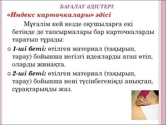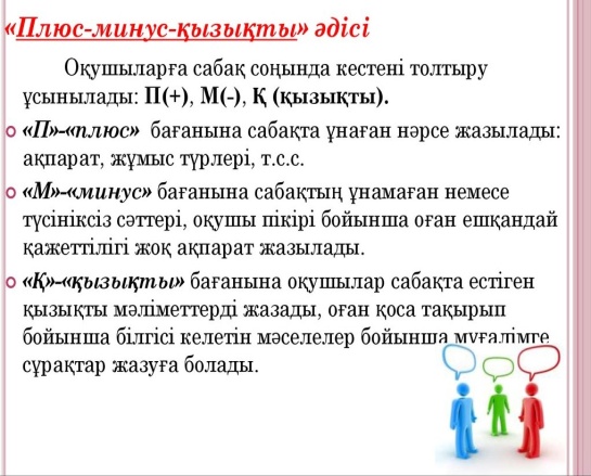 Талқылау кезінде оқушылардың айтылған пікірлері мен көзқарастары ауызша мадақтау арқылы бағаланып, сабақтың келесі кезеңінде белсенді қатысуына ынталандырады Жарайсың! Керемет
