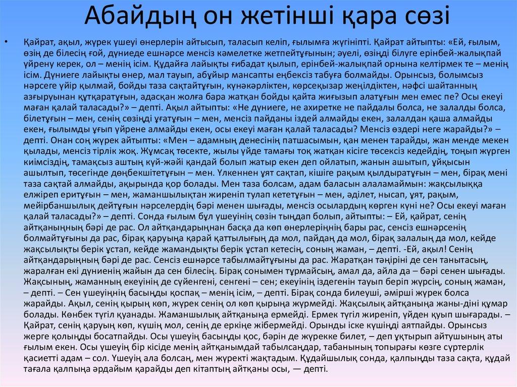 1-ші тапсырмадағы сұрақтарға өз сөзіңізбен жауап жазыңыз. (10 балл)