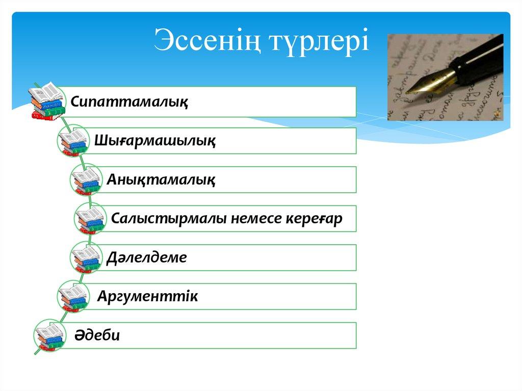 3. Epнaзapoвa З.Ш. Эcce түpлepi oқy құpaлы.-Aлмaты, 2018