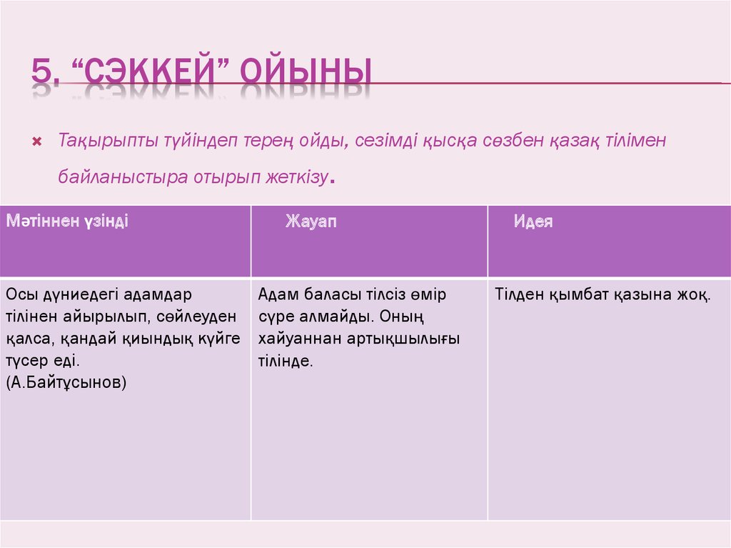 4 Қазақ тілі мен әдебиет сабақтарында жаңа технологиялар бойынша ойын .
