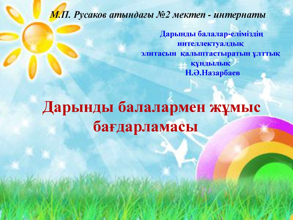 Дарынды, жас талапты жастар – бүгінгі егеменді еліміздің жарқын болашағы. Елбасымыз Н.Ә.Назарбаев: «Бізге керегі – шын дарындар. Нарық қол-аяғымызды қалай қыспасын мемлекет өзінің талантты ұлдары мен қыздарын, тарланбоз жүйріктерін қолдауға, қорғауға міндетті»,- деп еліміздің болашағы жастарға үлкен мән берген.