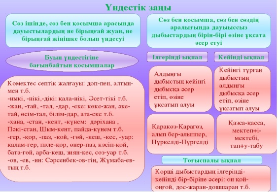 Сандықшадағы сөздерді пайдаланып, мәтін құрастырады. Дыбыстар жүйесіне, емлеге, үндестік заңына назар аударарады. Сандықшадағы тірек сөздерге фонетикалық талдау жасайды.
