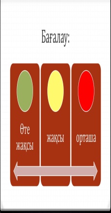Талқылау кезінде оқушылардың айтылған пікірлері мен көзқарастары ауызша мадақтау арқылы бағаланып, сабақтың келесі кезеңінде белсенді қатысуына ынталандырады Жарайсың!