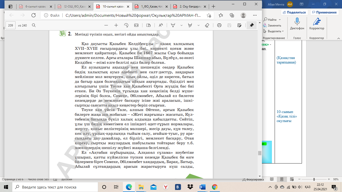 қазақ тілі қмж 10-сынып қоғамдық гуманитарлық бағыт "Қаз дауысты Қазыбек би"
