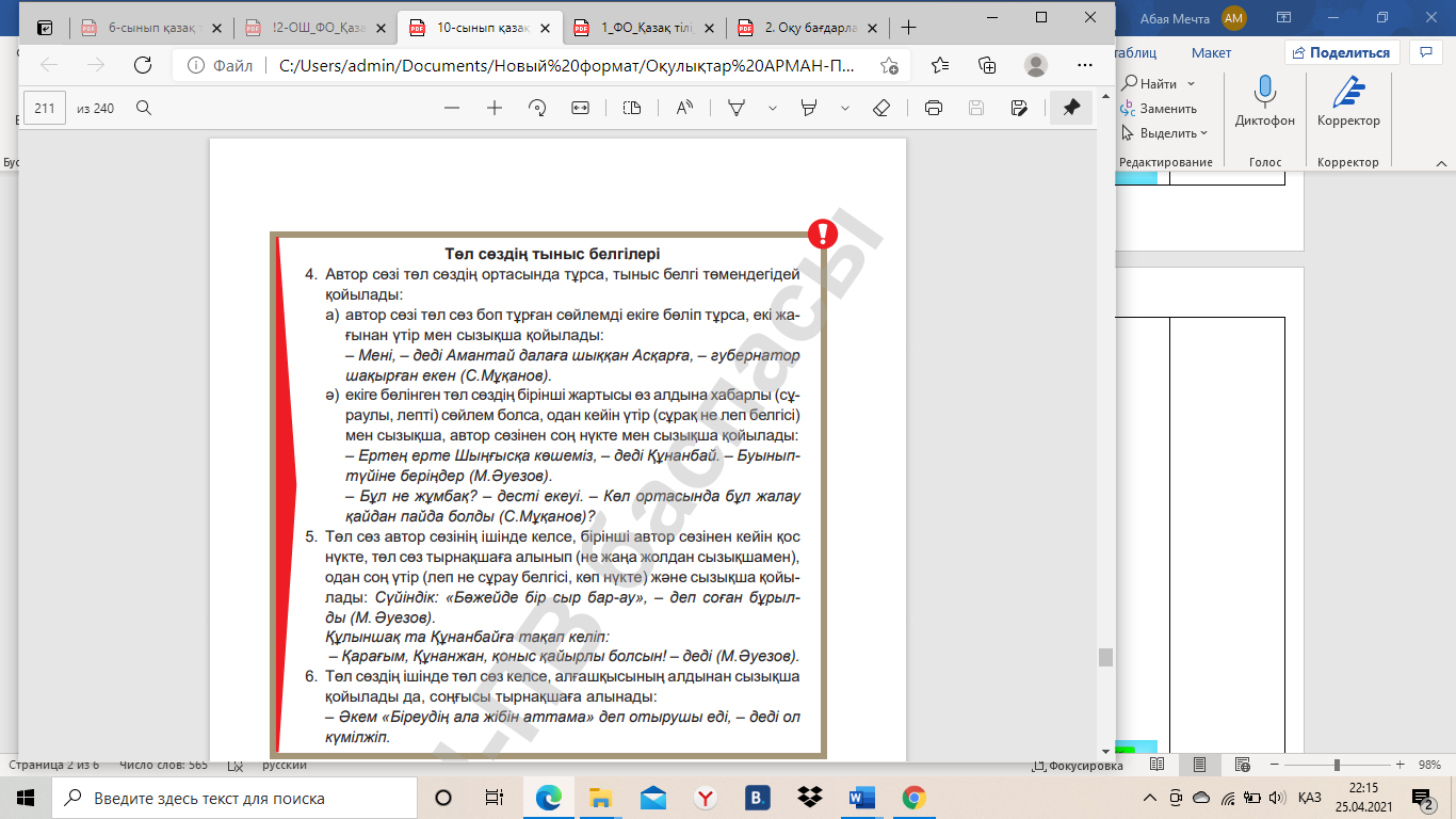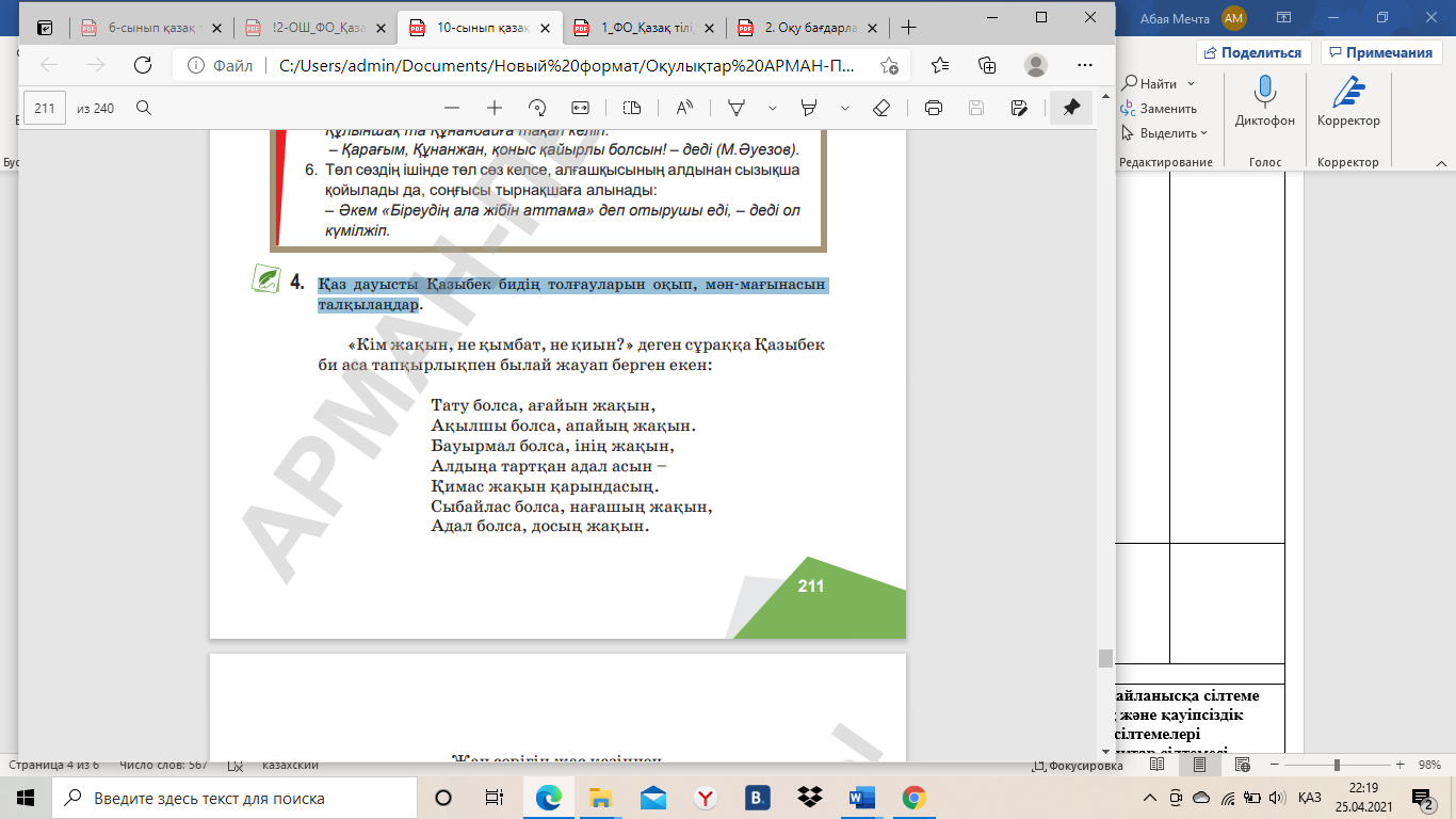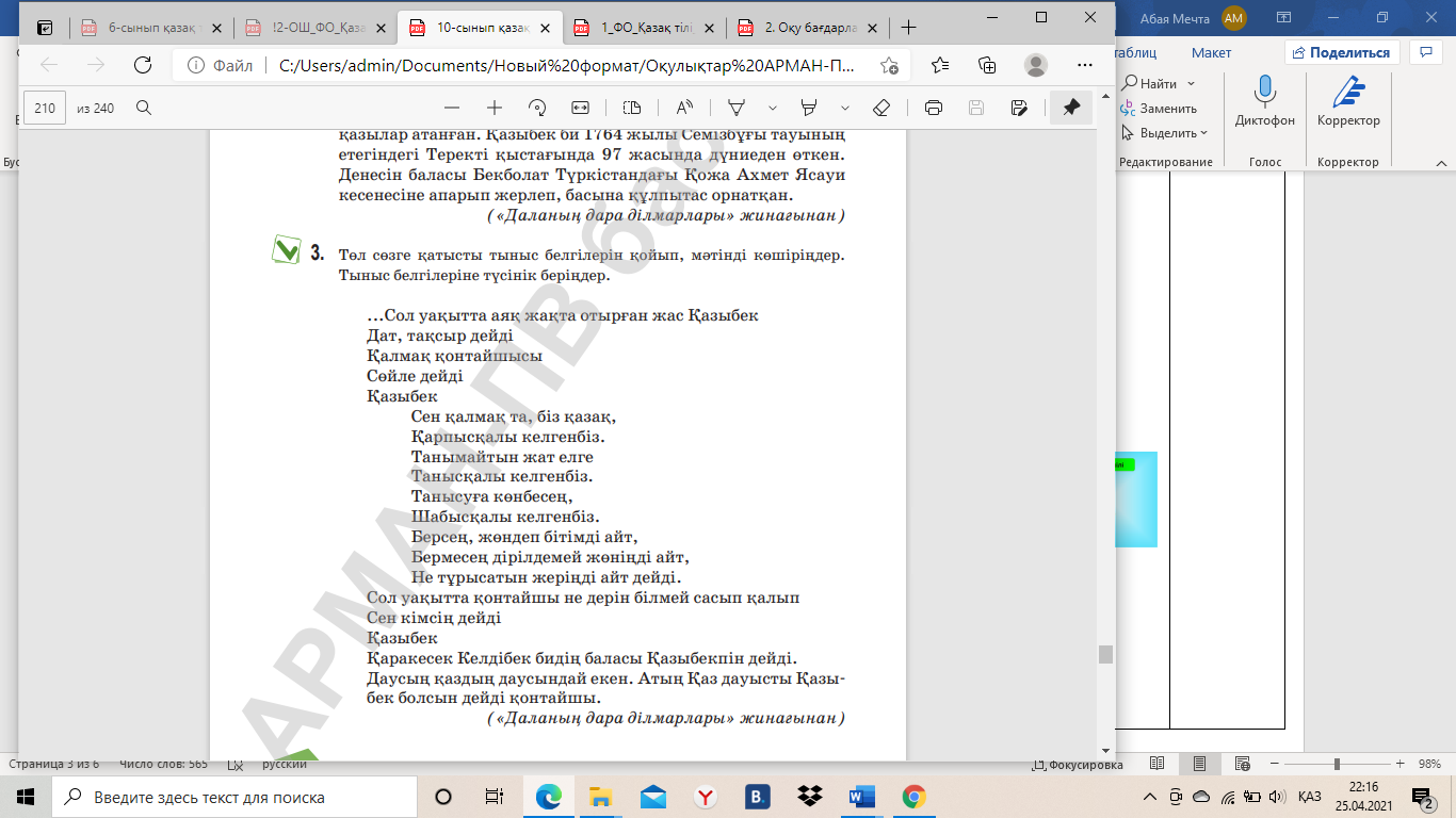 10-сынып «Қазақ тілі» оқулығы ((«Даланың дара ділмарлары» жинағынан) 10-сынып «Қазақ тілі» оқулығы «Даланың дара ділмарлары» жинағынан |