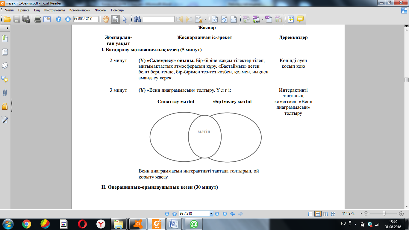 Сабақтағы жоспарланған іс-әрекет |