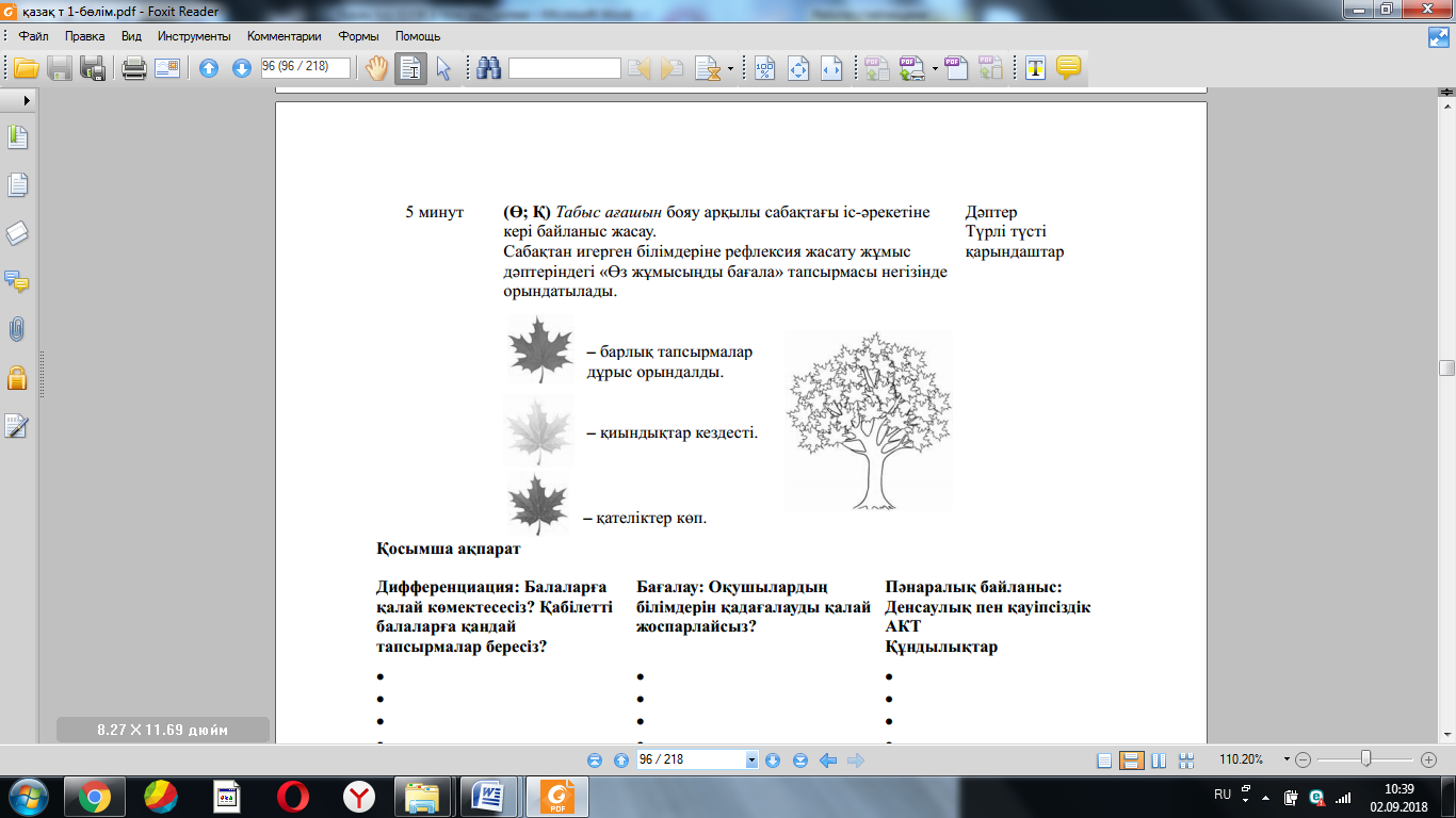 Бұл бөлімде оқушылардың сабақ барысында үйренгенін бағалау үшін қолданатын әдіс-тәсілдеріңізді жазасыз |