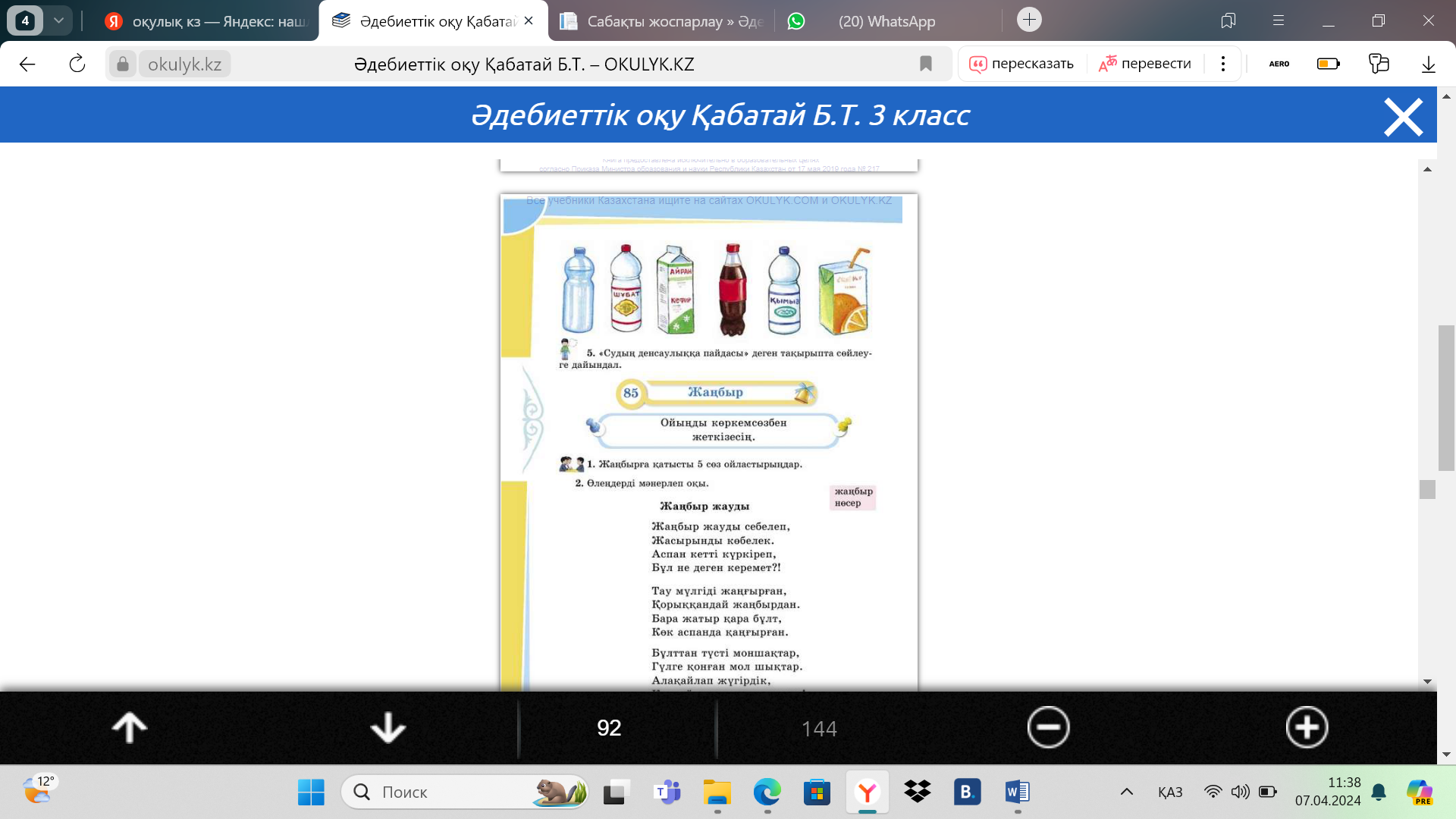 1-тапсырма. Өлең жолдарын өз сөзімен толық мәтін түрінде өзгертіп жаз.