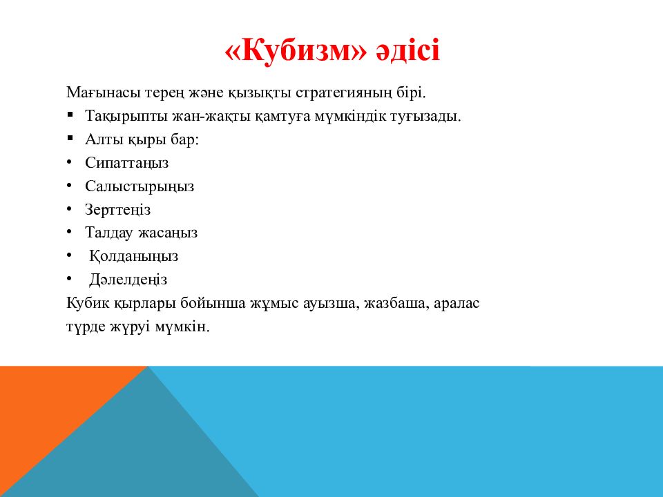 Оқу - әдістемелк құрал:Тілдік төрт дағды бойынша белсенді оқыту тапсырмалары. ISBN978-601-7239-83-1.