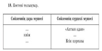 Амандасады Көңіл күйлерін айтады Тілек айтады Өткенді тақырыпты пысықтайды Тақырыпты табады Ақпарат алады Тапсырма орындайды Сергіп алады Кестені толтырады Күрделі мүшелерді теріп жазады Кері байланыс орнатады |