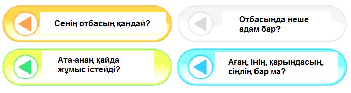 Берілген сұрақтарды пайдаланып, досыңнан оның отбасы туралы сұхбат