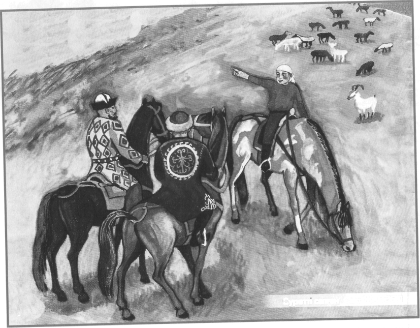 Мейрамбек мектептен келді де, қозыларын өріске айдап шықты. Ауыл сыртындағы алаңқайдың көк шөбі жер бетінен ине бойы көтеріліп калған. Күн жылы. Төмпешіктің түстік бетіне сарғалдақтар қаптап өскен. Мейрамбек қозыларына біраз қарайлады. Сөйтті де, сарғалдақтар өскен қырға жүгіре жөнелді.