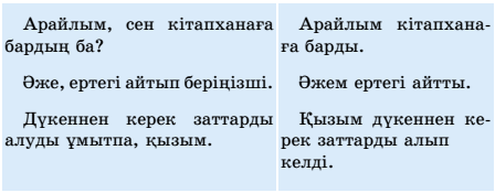 Кесте бойынша олардың мазмұнына, тыныс белгілеріне назар аударады. Сөйлемдерді салыстыру барысында не байқағанын айтады.