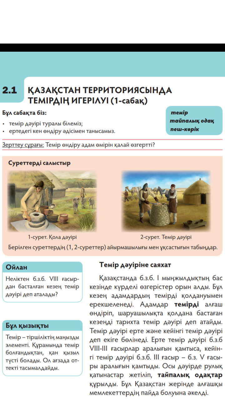 Қазақстан аумағында темірдің игерілуі Зерттеу сұрағы Темір өндіру адам өмірін қалай өзертті 5 сынып