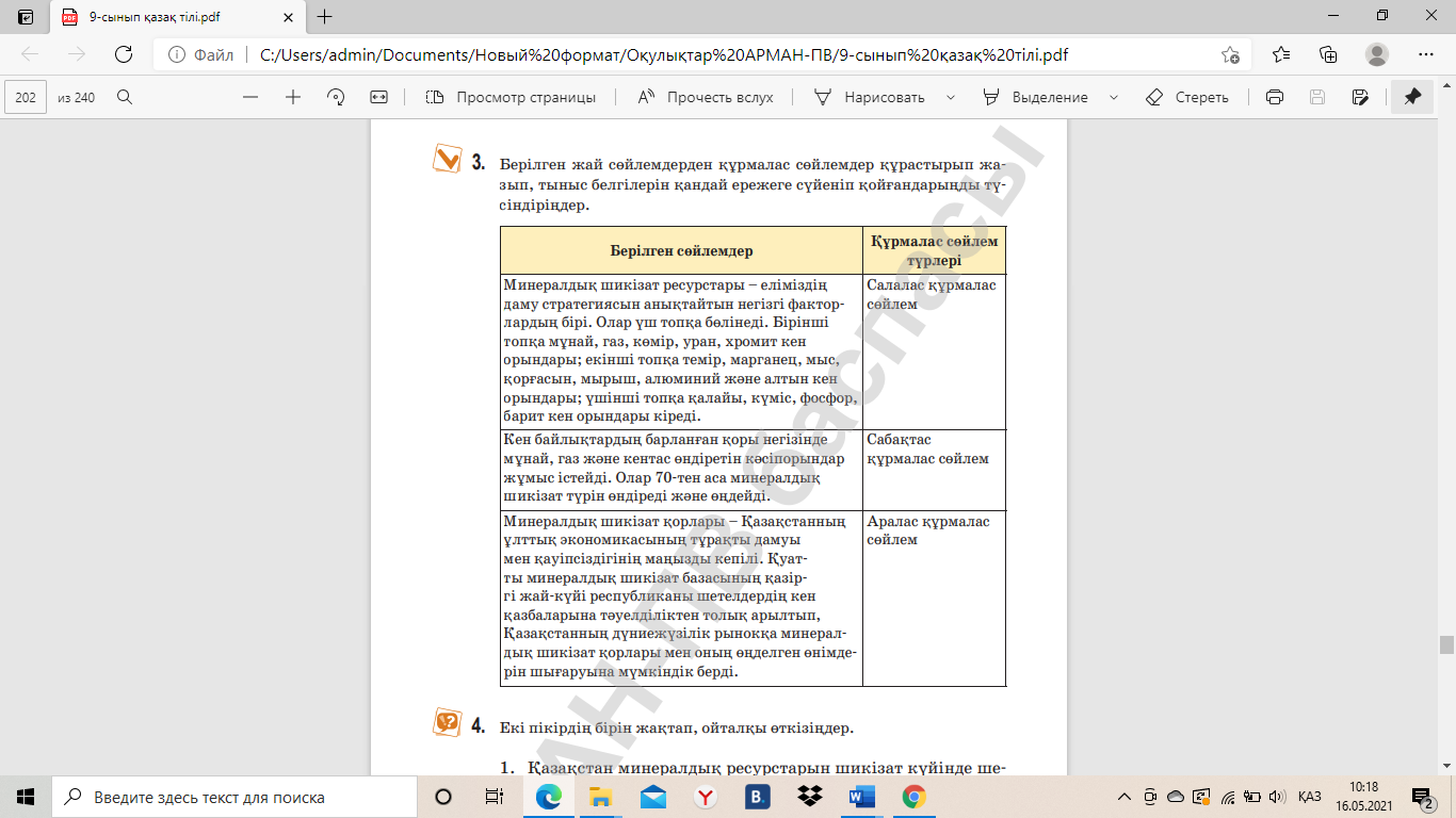 Wordwall платформасы арқылы құрмалас сөйлемдерді қайталау 4-ТАПСЫРМА. Екі пікірді екі топ жақтап, постер құрып, ойталқы өткізіңдер. 1.Қазақстан минералдық ресурстарын шикізат күйінде шетелге экспорттап, бай елге айналуы керек.