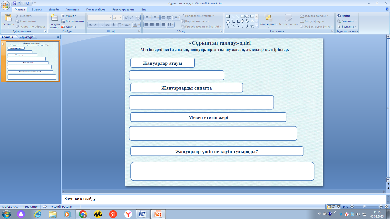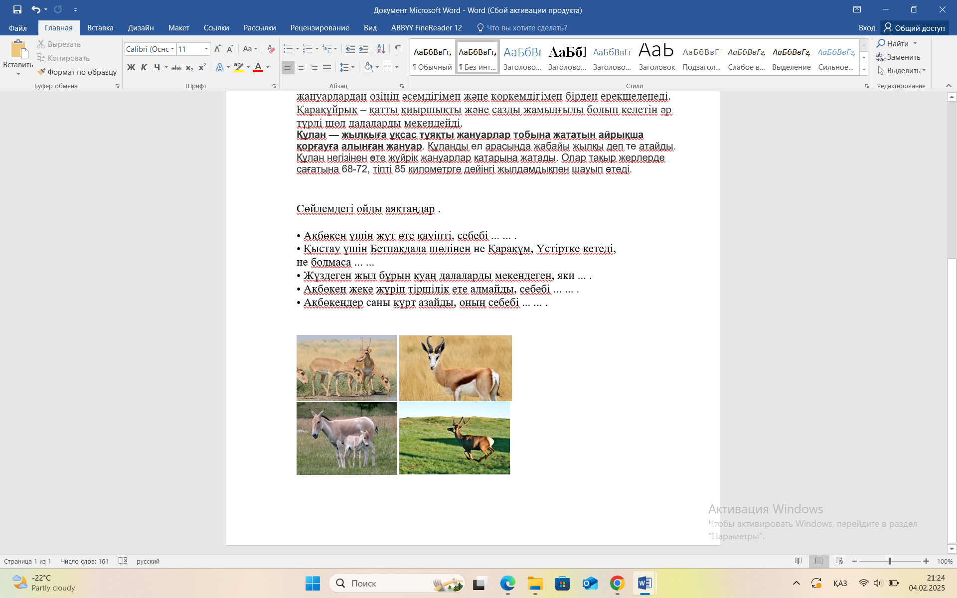 «Төрт сөйлем» әдісі арқылы Қазақстандағы жабайы аңдар туралы өз пікірлерін білдіреді.