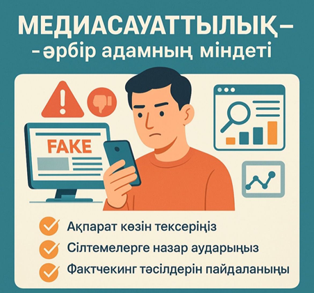 Медиасауаттылық — дағды, фактчекинг — құрал. Екі бағыт бірігіп, фейк ақпараттың алдын алады.