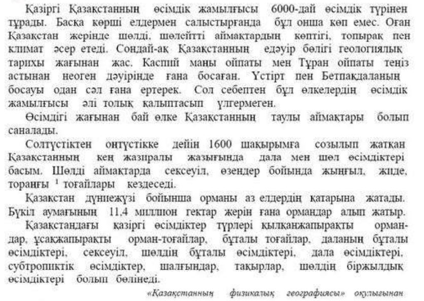 «Адамзат тіршілігіндегі өсімдіктер әлемінің маңызы өте зор» тақырбында РАФТ әдісі бойынша мақала жаза алады