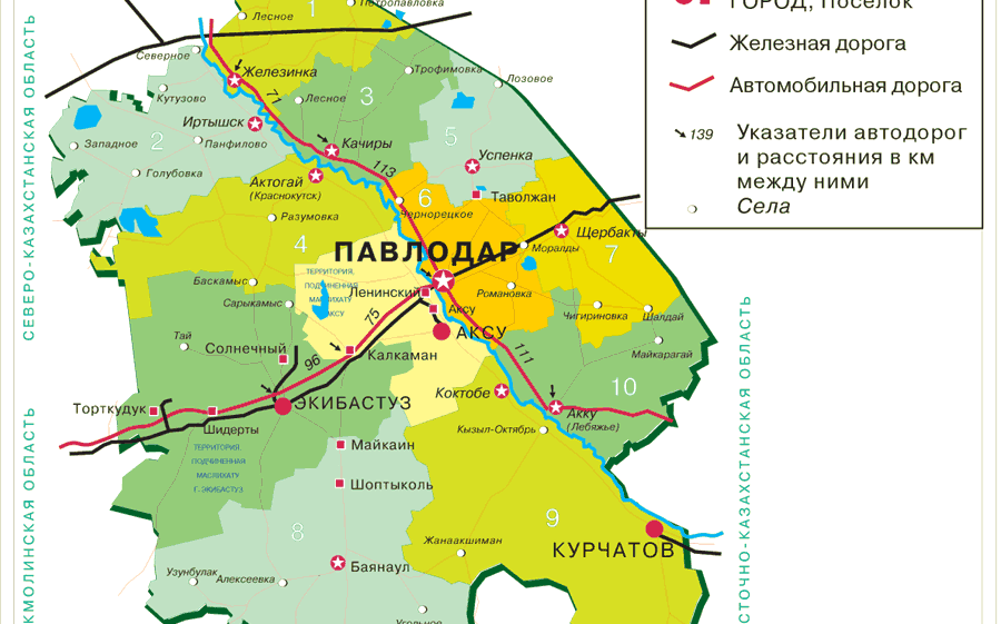 Картаға қарап, Павлодар, Қарағанды, Атырау, Түркістан облыстарын көрсетіңіз.