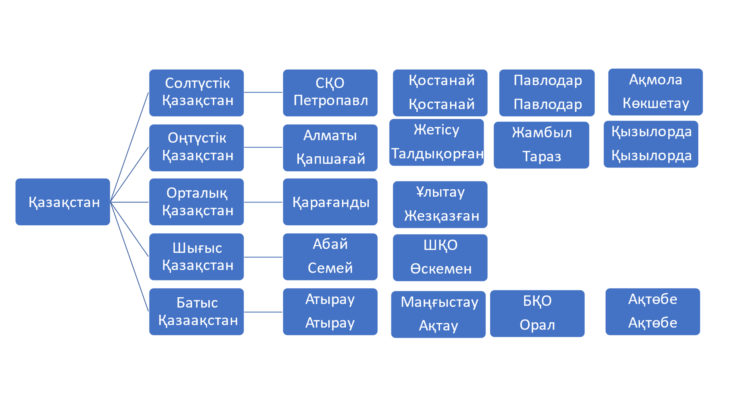 «Тұжырымдамaлық карта» әдісі. Жіктеу, аналитикалық дағдысы дамиды. Қазақстанның облыстары мен облыс орталықтарын тұжырымдамалық картаға жіктеңіз
