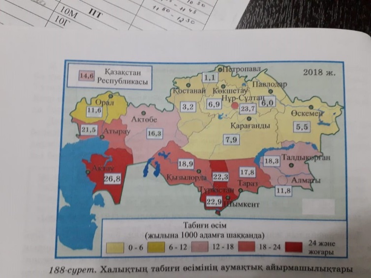 Халықтың табиғи өсімінің аумақтық айырмашылығын кестеге толтырыңыз. Табиғи өсімнің аса жоғары болу себебін түсіндіріңіз