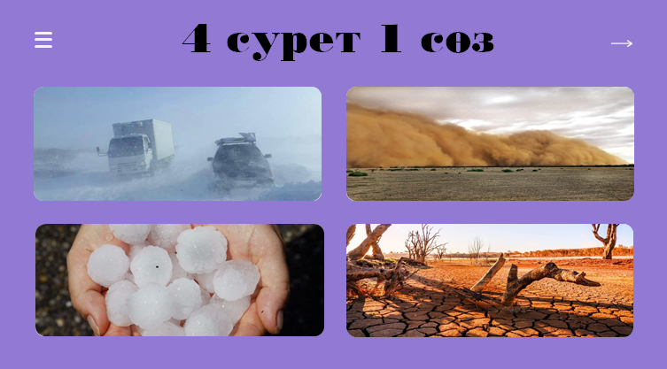 1 тапсырма: Қазақстандағы қолайсыз атмосфералық құбылыстарды сәйкестендіру.