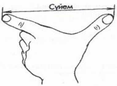 Сүйем – бас бармақ пен сұқ саусақты керген кездегі