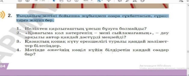 Айтылым 2-тапсырма. Тыңдалым мәтіні бойынша сұрақтарға жауап бер.