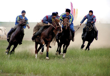 Көкпар - ұлттық ат ойыны. Этнографтардың айтуынша, әуелгі атауы «көк бөрі» сөзінен шыққан. Бұрындары мал баққан көшпелі халықтар көк бөріні соғып алғанда өлігін ат үстінде сүйрелеп, бір-бірінен ала қашып, мәз-мәйрам болған. Кейін ол ұлттық ойынға айналған. Көкпар Орта Азия халықтарының да сүйікті ойыны. Көкпар жаппай тартыс және дода тартыс болып екіге бөлінеді. 1949 жылы елімізде көкпар жарысының жаңа ережесі бекітілді. |