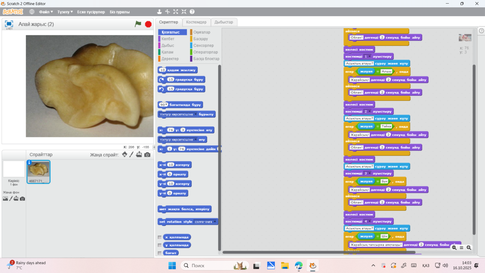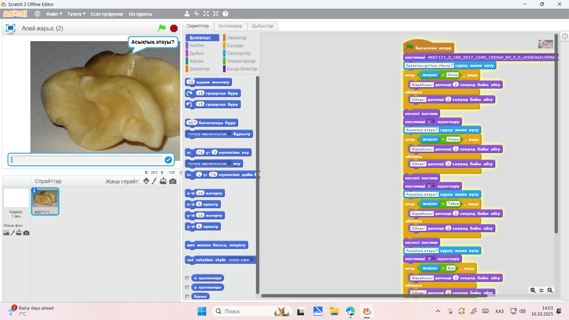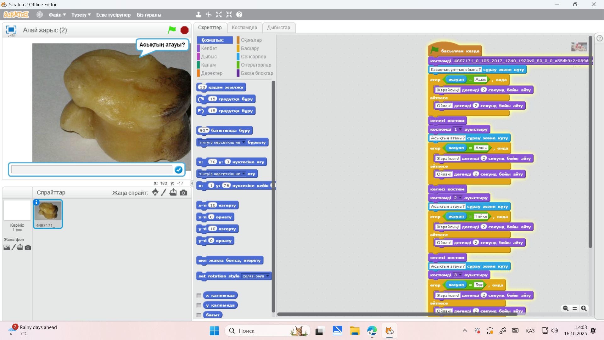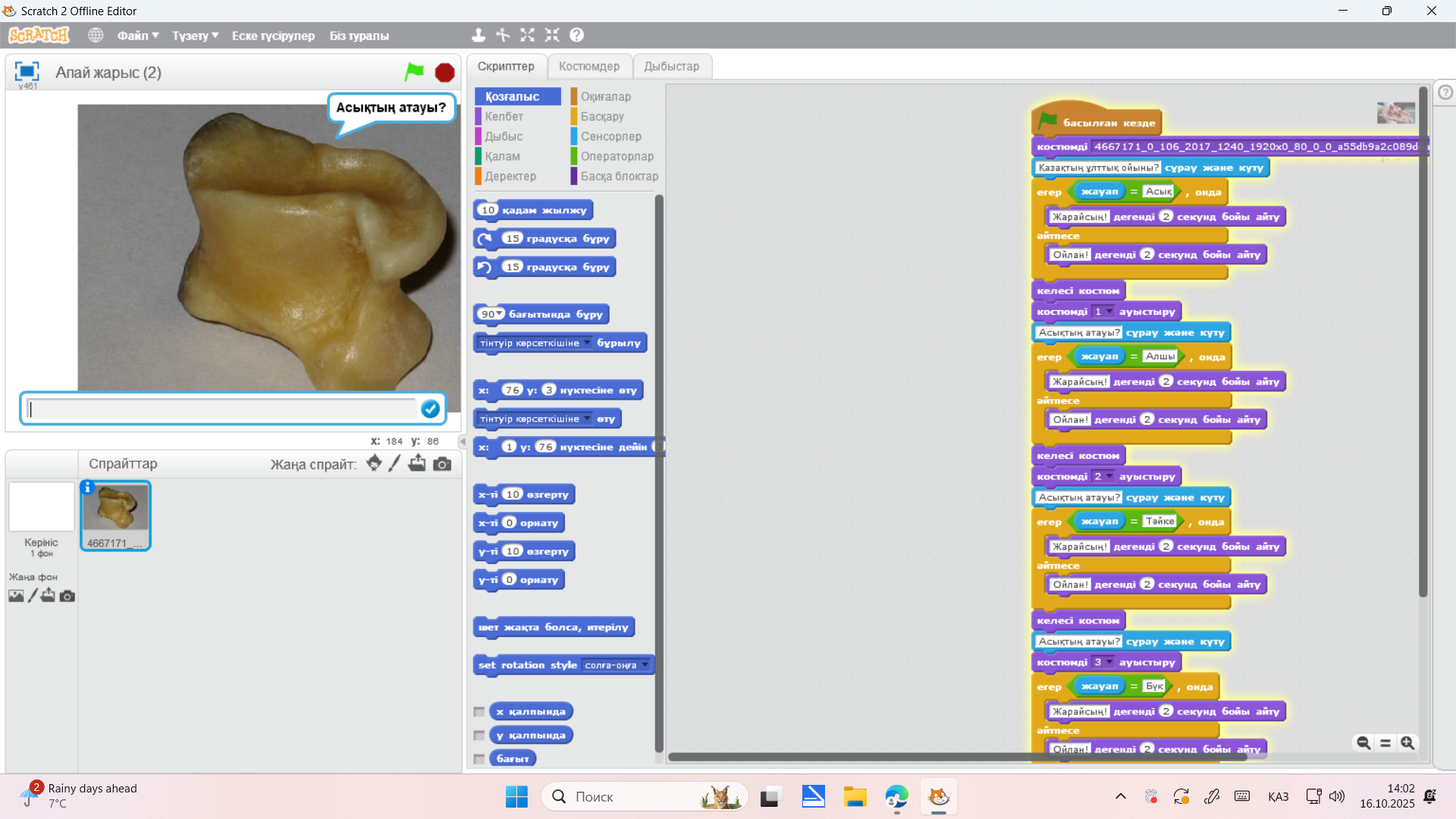 Қазақтың ұлттық ойыны асық scratch бағдарламасында қолдану.