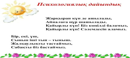 Сабаққа дайындық жасап, жақсы тілектер тілейді.