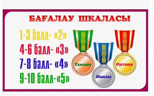 «шоқпар» әдісі арқылы бағаланады. Бағалау: |
