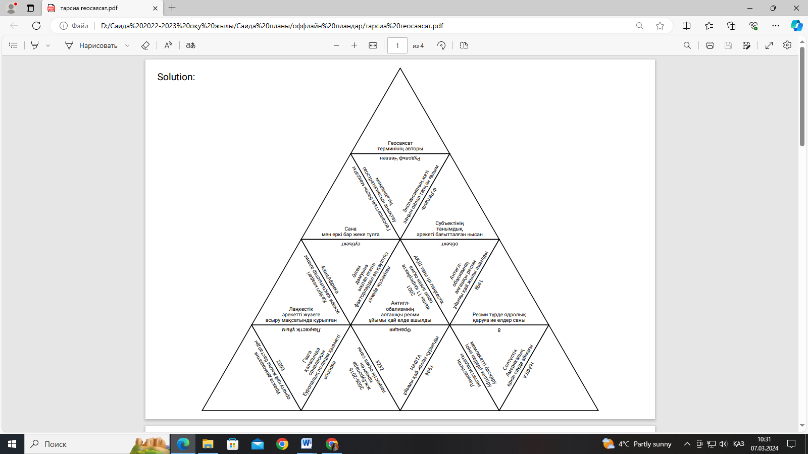4. Жаңа тақырып бойынша тапсырма орындау 1-тапсырма. Тарсиа әдісі.