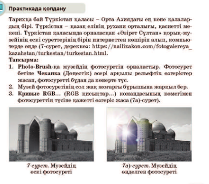 7 (а)- сурет. Музейдің өңделген фотосуретін жасайды Оқушылар өзін –өзі бағалайды. Экранда көрсетілген сұрақтарға жауап береді Оқушылар өзін –өзі бағалайды. Оқушылар кері байланыс береді. Оқушылар өзін –өзі бағалайды. Бағалау критериі бойынша |