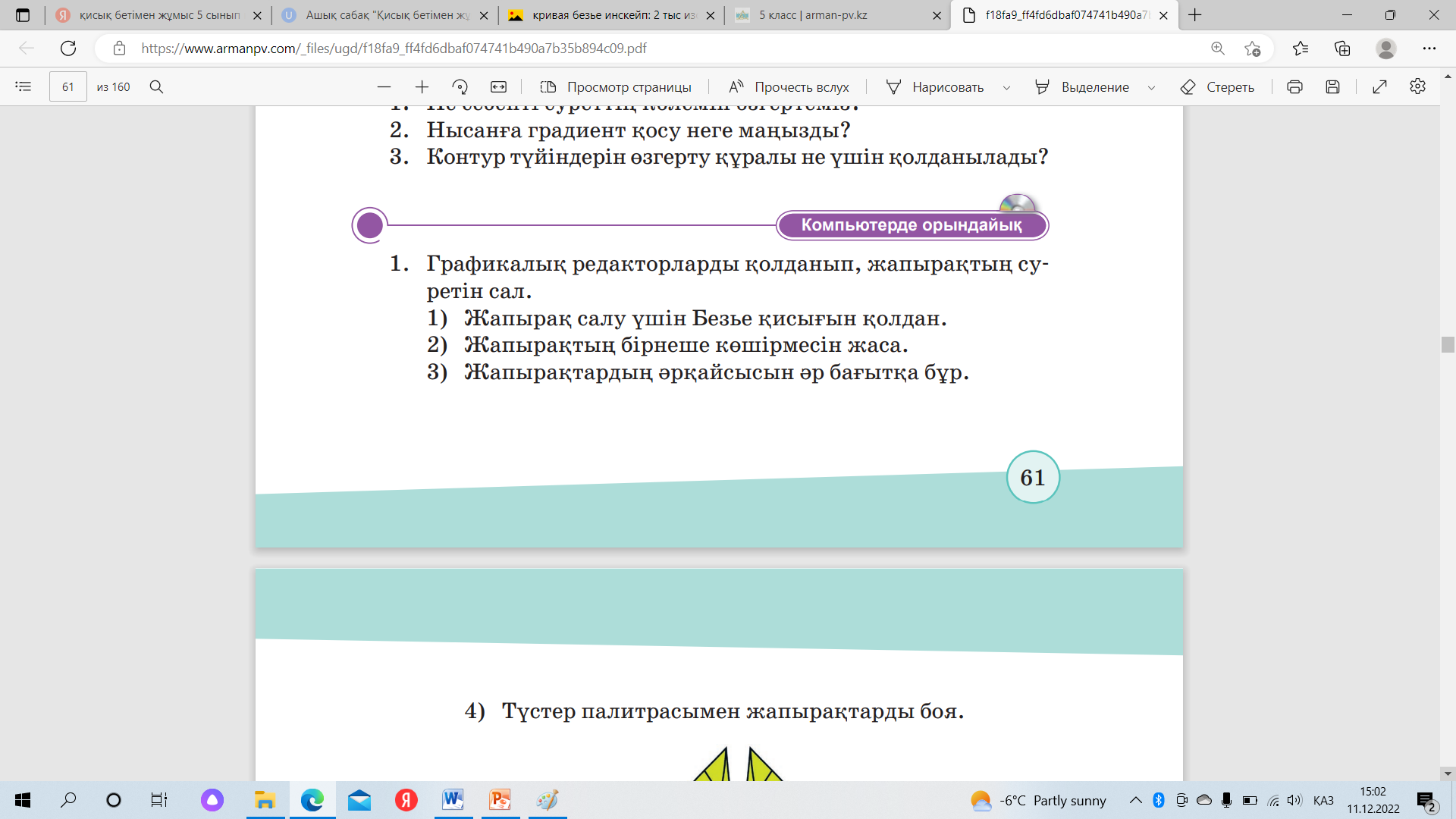 Жаңа білім Пернетақтадағы әріптерді таңдау арқылы жаңа сабақтың тақырыбын ашады. )bcs0 ,tn3vty ;9vsc Қисық бетімен жұмыс. Бейнеролик арқылы жаңа сабақты түсіндіру. 1-тапсырма. Сәйкестендіру тапсырмалары. LearningApps қосымшасында. 2 – тапсырма. Жұптық тапсырма 5