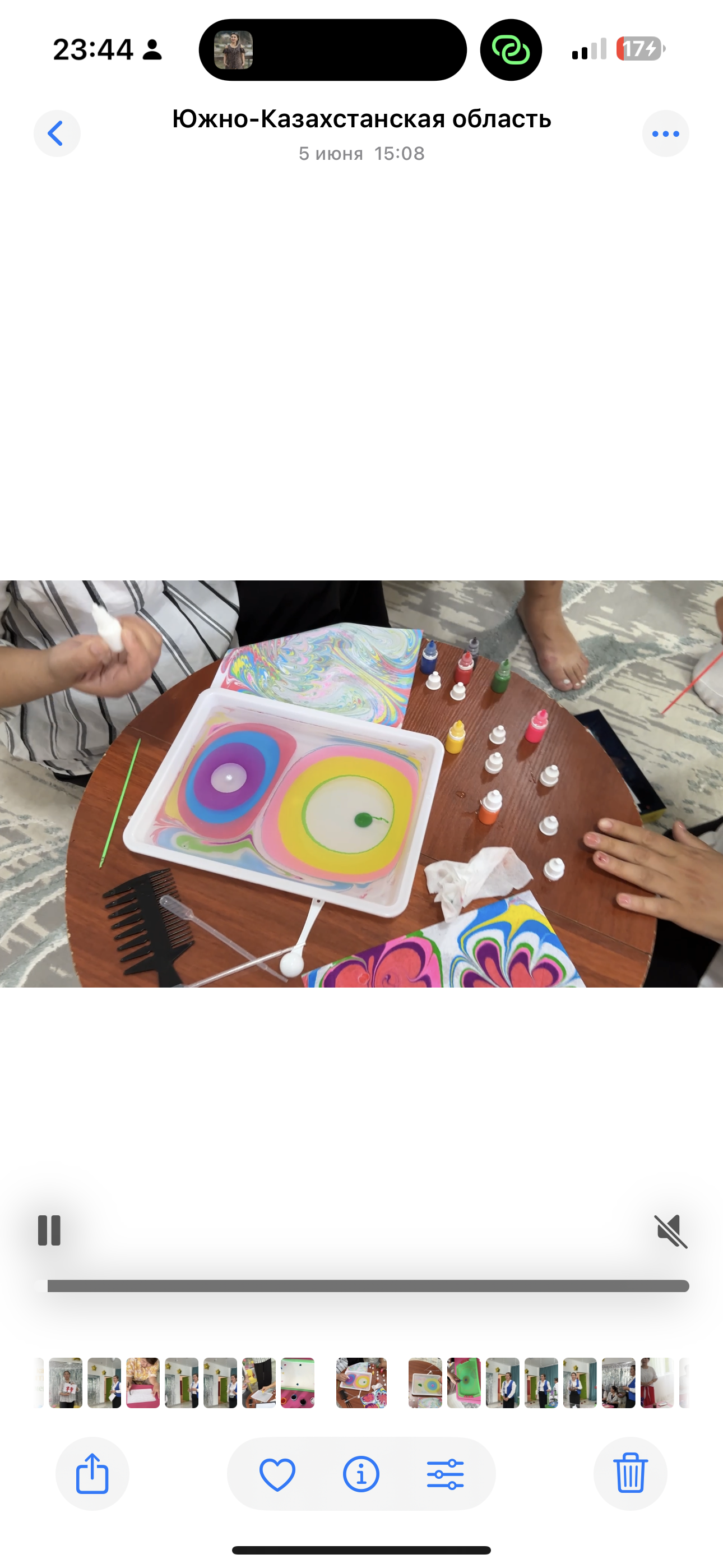 – Бүгін сіздермен бірге балалармен қолдануға болатын бірнеше қызықты техникамен танысып, қолданып көреміз. Соның ішінде ерекше орын алатыны – Эбру техникасы.