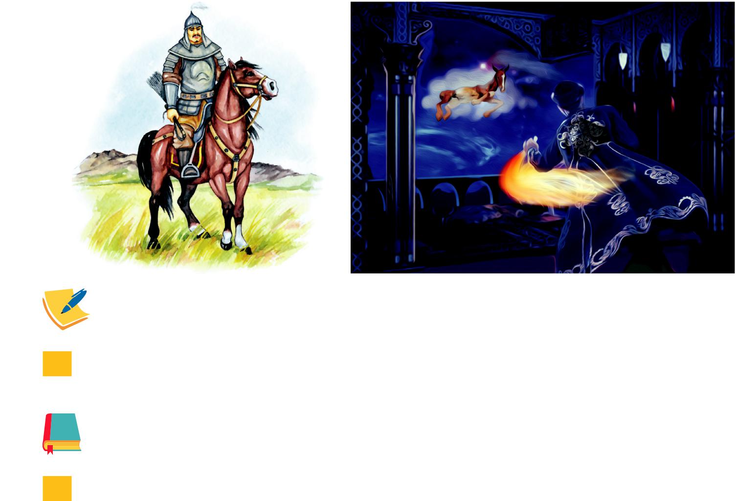 3-топ. «Керқұла атты Кендебай» «Доппен дос болайық» әдісі арқылы алдыңғы оқуды пысықтаймын Ал, оқушылар топқа бөлінген суреттерден нені байқадыңдар? Бүгінгі сабақ не туралы болады деп ойлайсыңдар? Оқушылар бүгінгі тақырыптың қиял-ғажайып фильмдер екенін айтады |