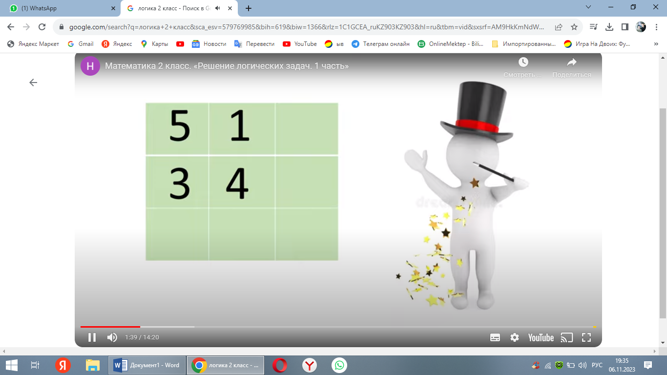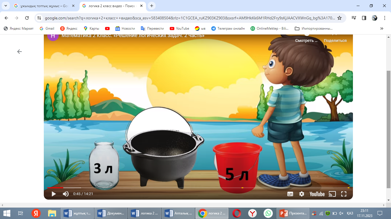 Логикалық тапсырмалар арқылы оқушылардың шығармашылық қабілетін дамыту.Қызығушылығын арттыру.Ойлау және қабылдау қабілетін дамыту |