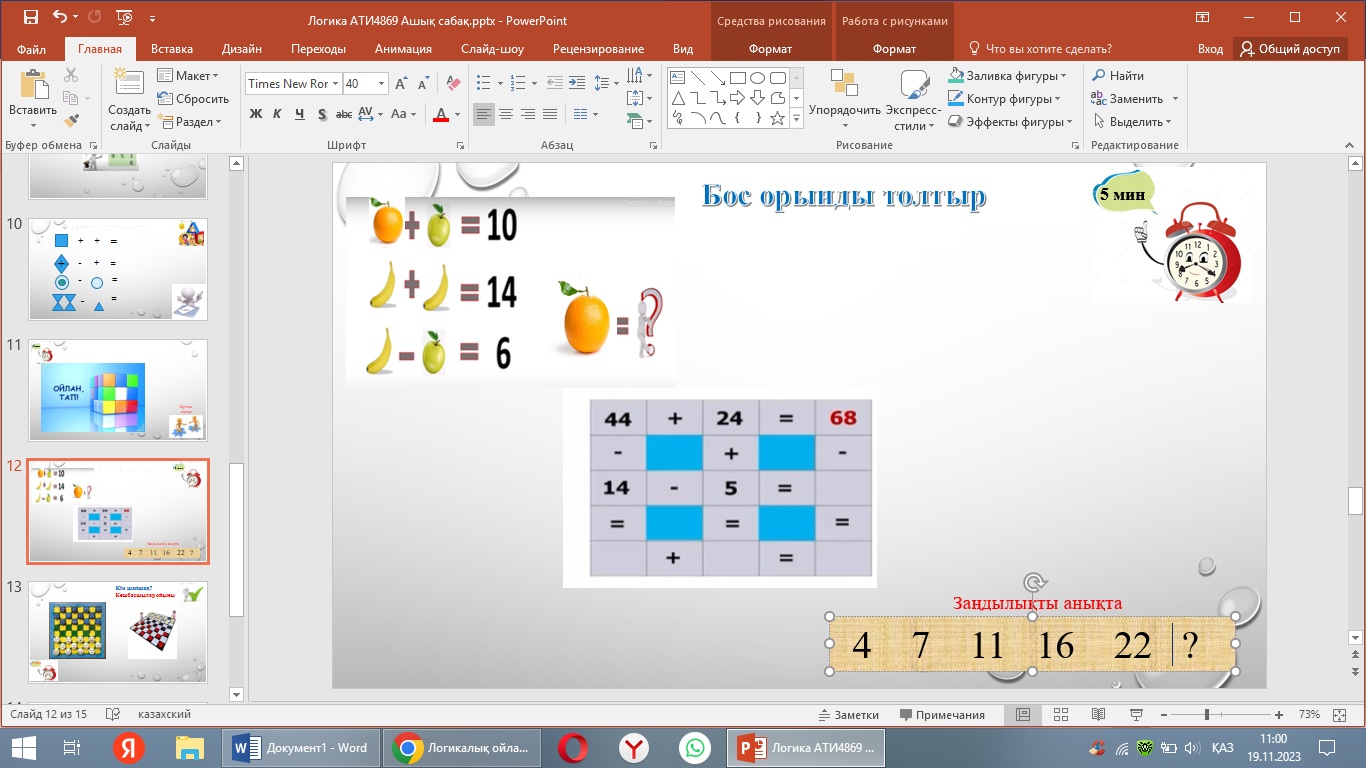 . Уақытқа бағынады Бос ұяшықтарға сандар жазады