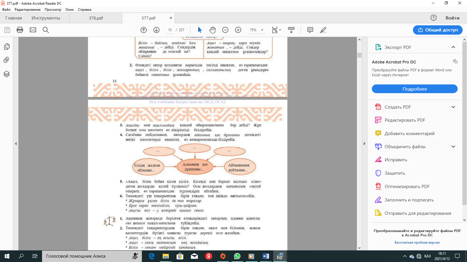 Дескриптор: Жалпы - 3 балл. - көз-қарастарын білдіреді |