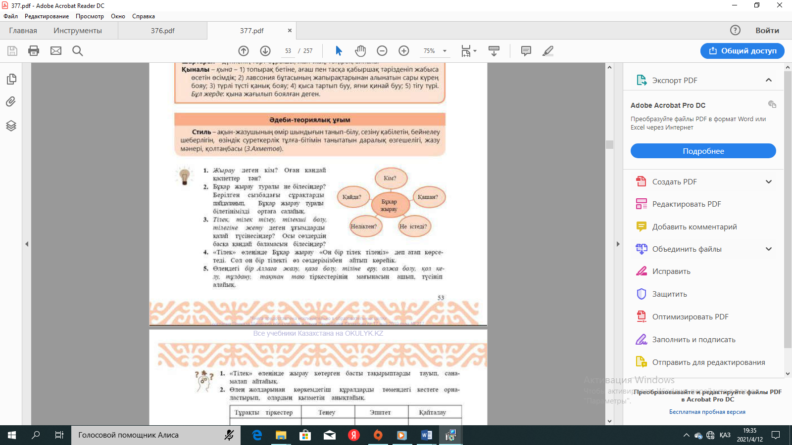 №1-тапсырма: Сұрақтарға жауап бер: |