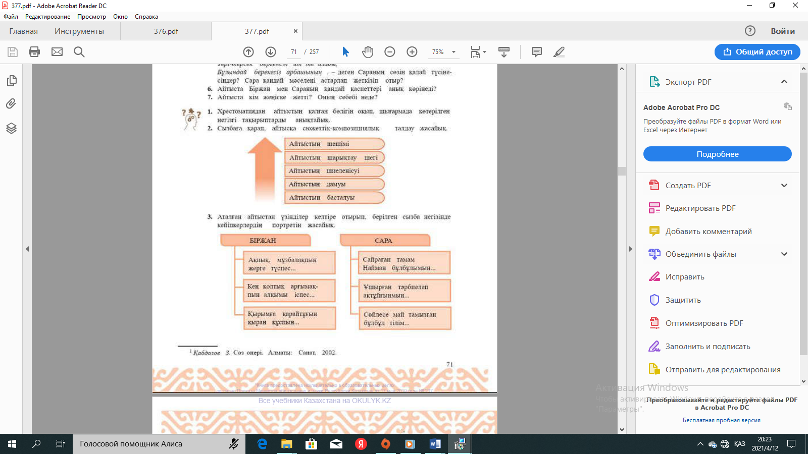 9.1.1.1. Әдеби шығармаға сюжеттік-композициялық талдау жасау |
