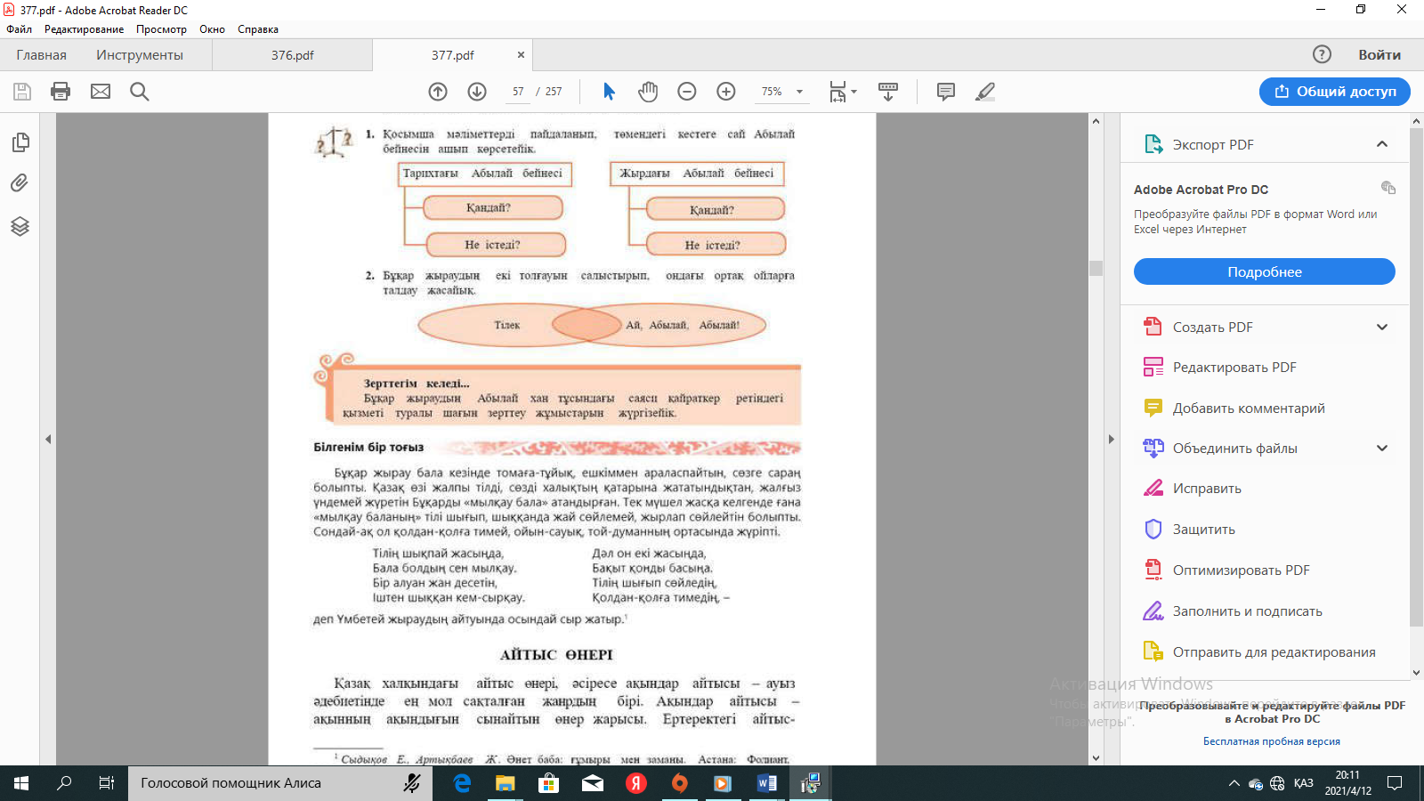 Сабақтың ортасы Мағынаны ашу. 10 мин