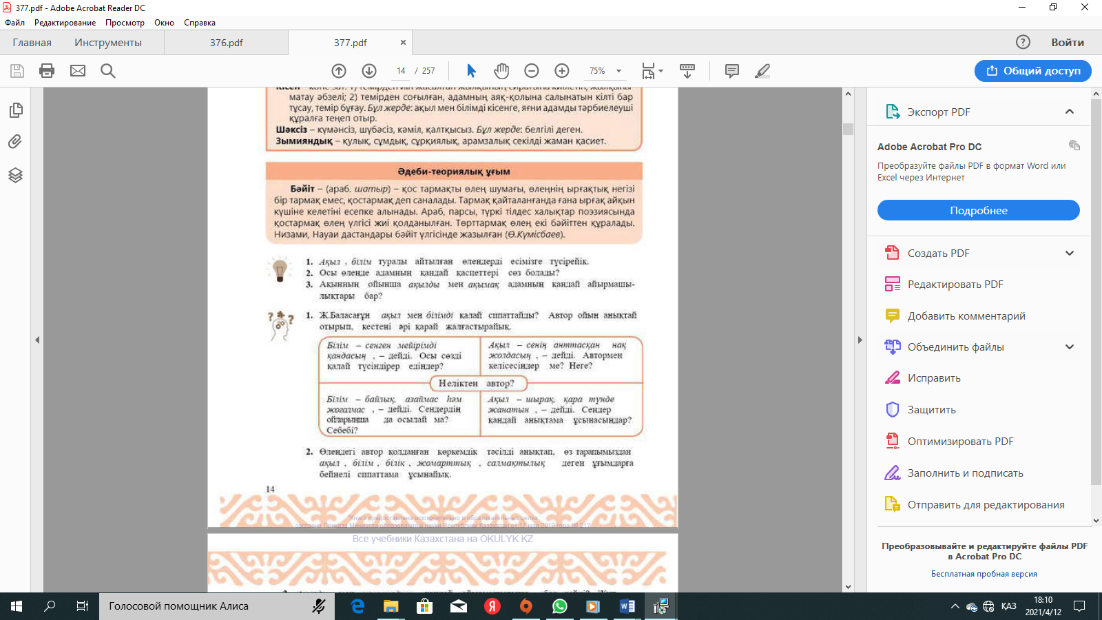 9.3.3.1. Шығарманың идеясын ғаламдық тұрғыдан талдап, әдеби эссе жазу |