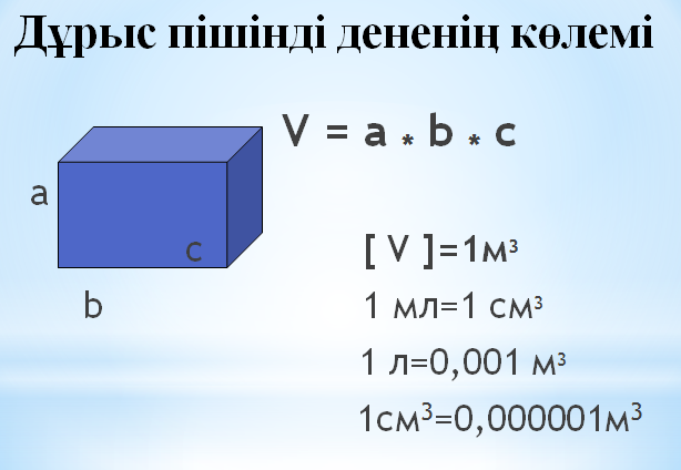 Барлық оқушылар: Оқушы дененің өлшемдерін, көлемін анықтау үшін құрал-жабдықтарды қолдана алады |