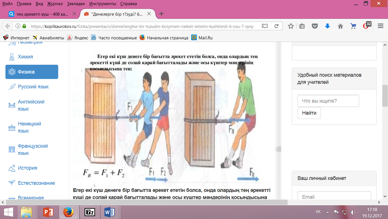 Бір түзу бойымен денеге әрекет еткен күштерді қосу.БЖБ№4 |