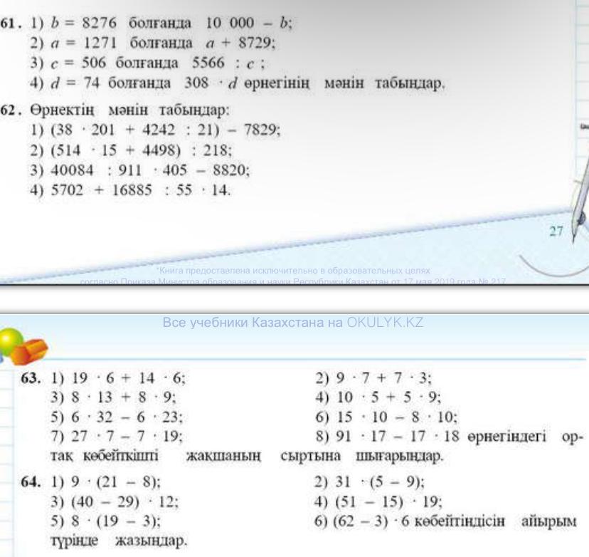 Математика 5. 2. 1. 1 қосу және көбейту амалдарының қасиеттерін қолданып, әріпті өрнектерді түрлендіру Қазақ тілі 5. 3. 6. 1 мәтіндегі орфографиялық қателерді сөздіктерге сүйене отырып, түзету және редакциялау |