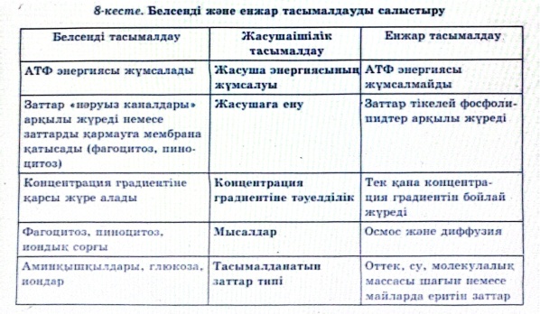 10.1.3.2 - пассивті және активті тасымалдау механизмдерін салыстыру |