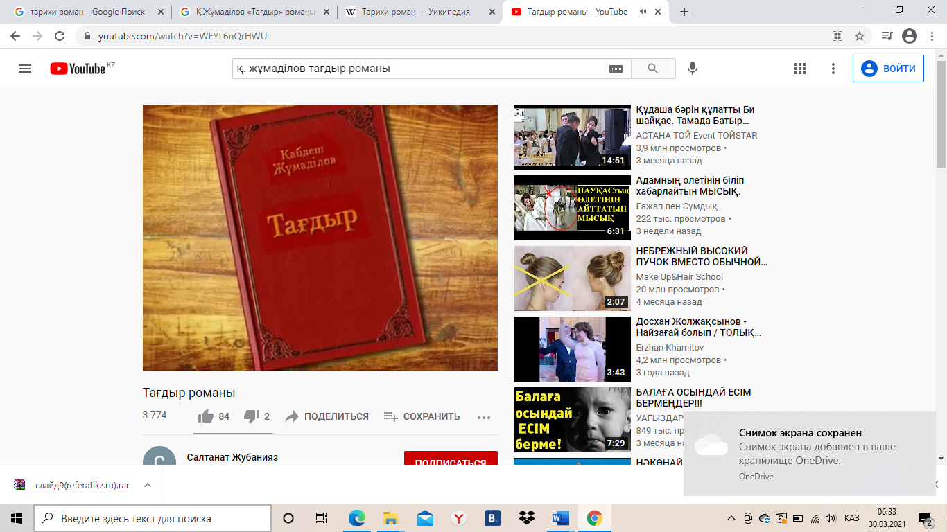 Қабдеш Жұмаділов «Тағдыр» романы. |