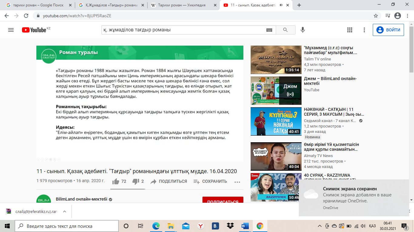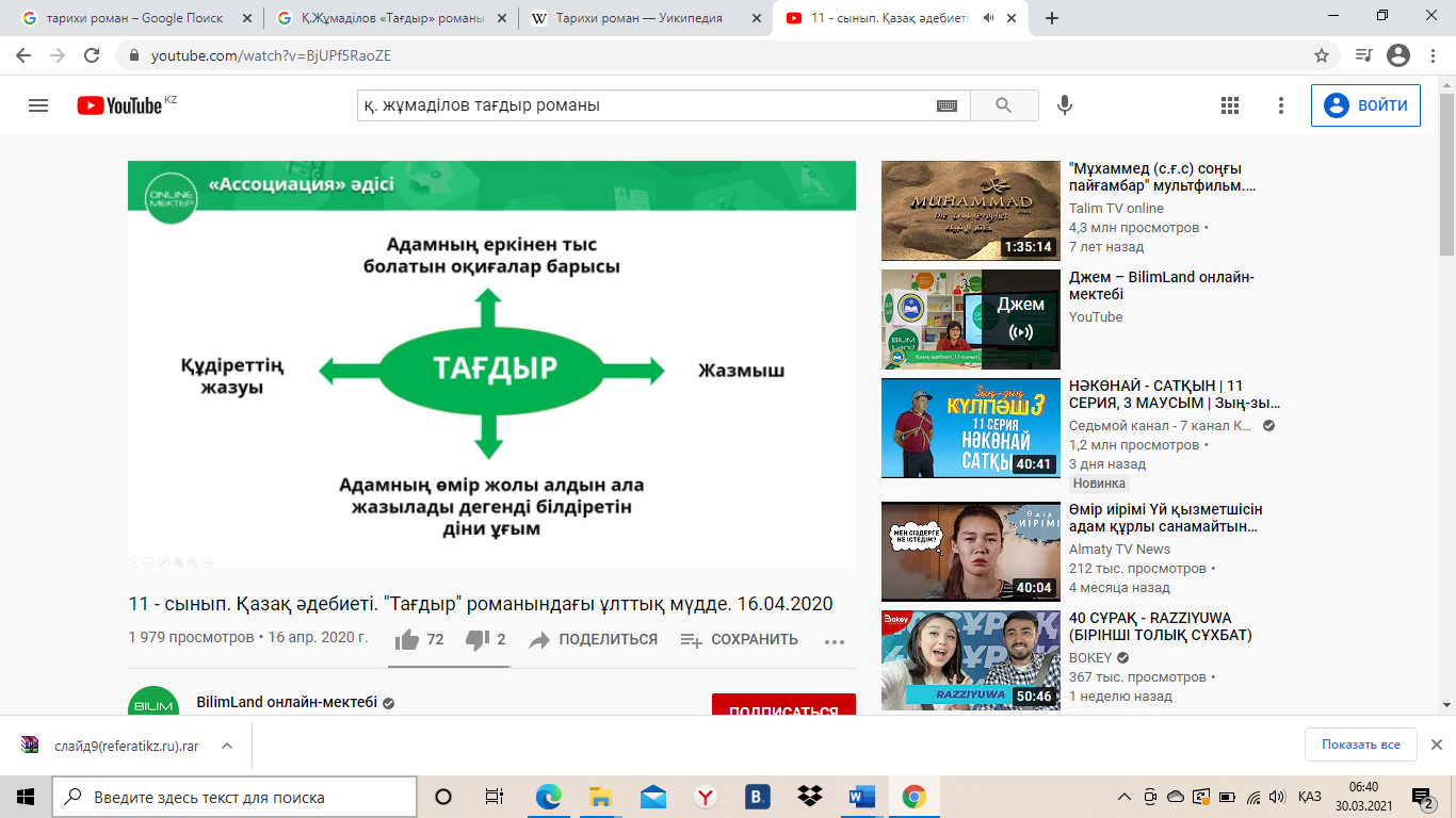 Мағынаны тану. https://www.youtube.com/watch?v=WEYL6nQrHWU Шығарма туралы бейнематериал тыңдайды.